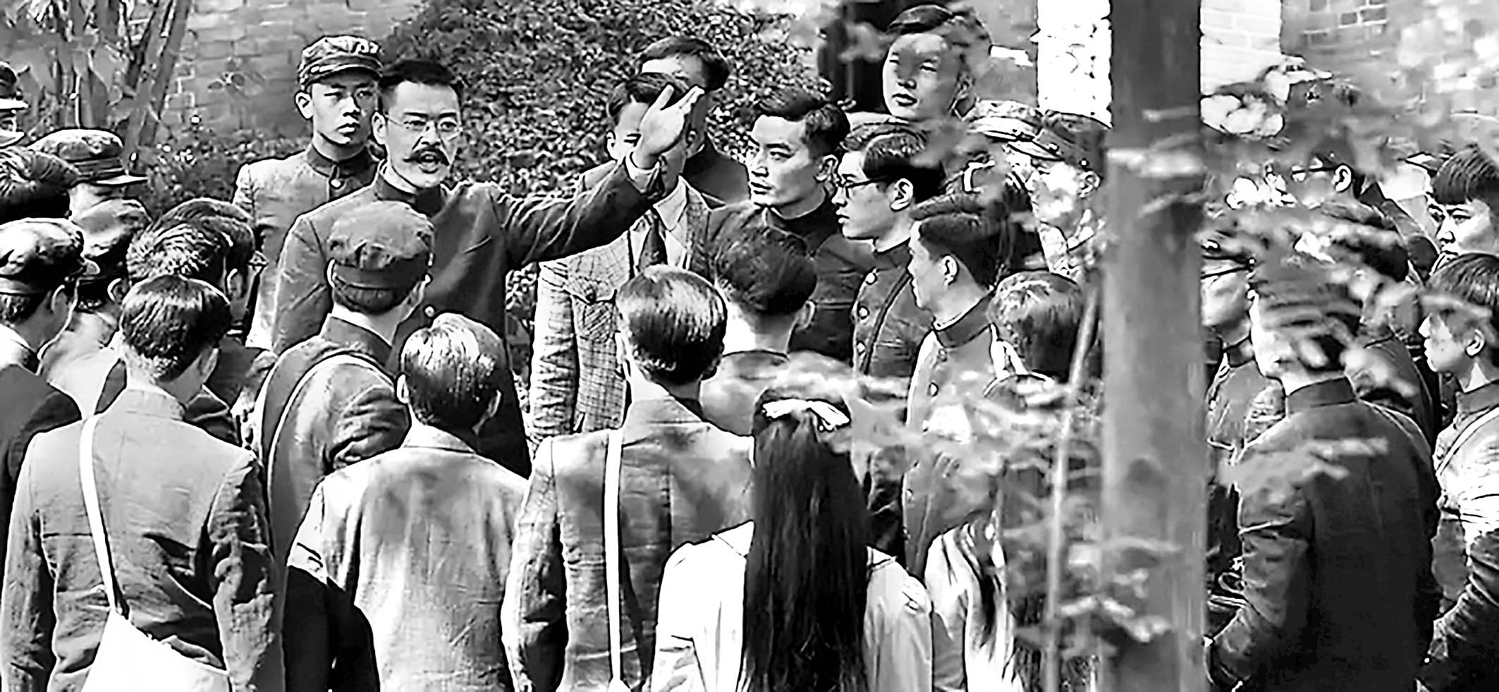 1915年,在日本东京早稻田大学,进步留学生李大钊、高一涵等与主张复辟帝制的学生张丰载、刘一品等开展激烈辩论。李大钊慷慨陈词“唤起民众觉悟、推翻封建思想、振作民族精神”,引起了流亡日本的革命者陈独秀的关注。遭到学生误解围攻的陈独秀,在李大钊帮助下脱困,二人相见恨晚,就中国的救国之道展开讨论。